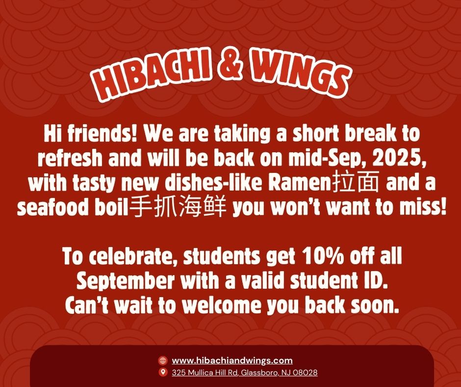 Welcome to Hibachi & Wings located at 325 Mullica Hill Rd Glassboro, NJ 08028!